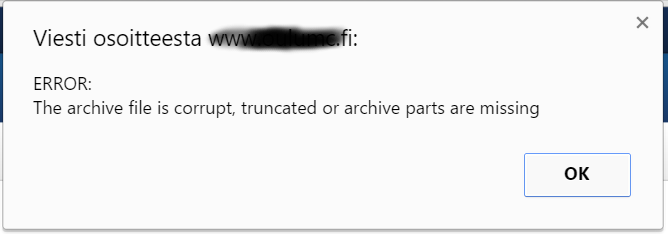 Mortti vastasi aiheeseen: The archive file is corrupt, truncated or archive parts are missing