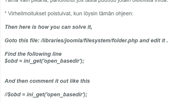 Vaikuttaako tuo päivityspaketin lataamiseen palvelimelle? Mikä tuo open_basedir on ja mihin sen voisi määritellä, kun ilmeisesti sitä ei ole määritelty?