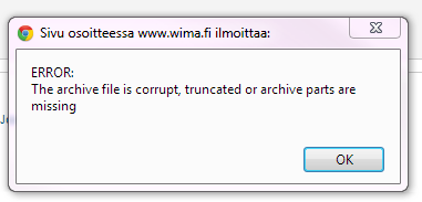Kun yritän tehdä asennuksen lataamalla paikalliselta tietokoneelta zip-paketin, niin saan virheilmoituksen. Lataus kyllä menee 100%:n asti ja sen jälkeen tulee virheilmoitus.