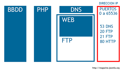 Netin käyttäjä avaa selaimensa, ja kirjoittaa osoitteen, johon haluaa mennä, esim. magazine.joomla.org/es . Ensimmäiseksi tietokone kysyy DNS-palvelimelta, joka on asetettu verkkoasetuksiin, vastaavaa ip-osoitetta tuolle nimelle (magazine.joomla.org). Jos DNS-palvelin saa vastauksen, se palauttaa sen selaimella, jos taas ei, se kysyy DNS-verkon kautta DNS-pääserveriltä (master server) domania, jota on haettu (tässä tapauksessa joomla.org). Selain tietää joka tapauksessa etsiä koneelta ip-osoitetta 72.248.159.59.