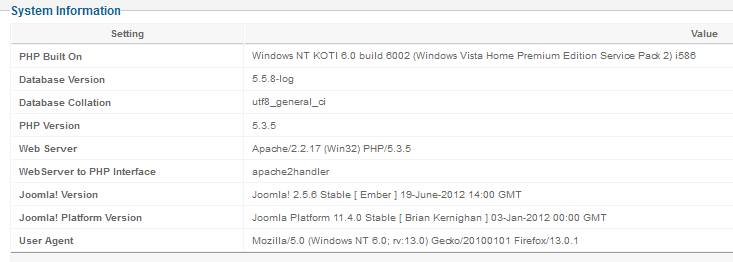 Legacy mode: Disabled | Joomla! SEF: Enabled | Joomla! SEF rewrite: Disabled | FTP layer: Disabled |