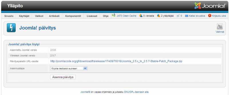 Kumma ettei Joomlan oma päivitystarkistaja havaitse vielä uutta päivitystä.