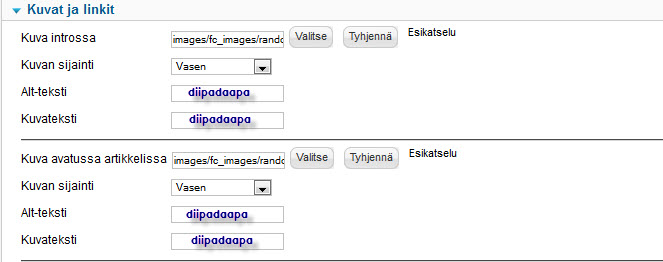 Oletko koittanut testata artikkelikuvien toimivuutta Joomlan oletussivupohjalla?