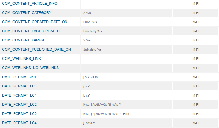 Onko sinulla käytössä kielitiedostojen yliajoja esim. date-formaateille ko sivustolla? Aika paljon mm siihen liittyviä asioita loki näyttää. Lisäksi kiinnitin huomioni noihin Kunena ja sen Discuss lisäosaan kohdistuneista...