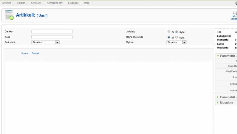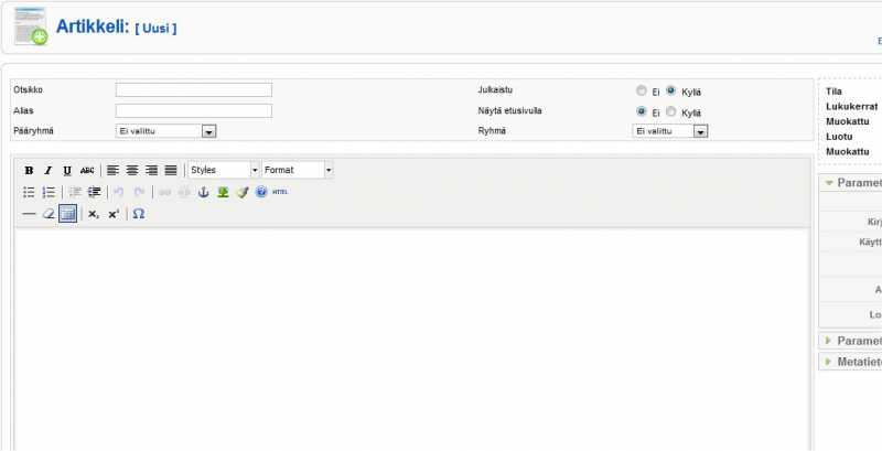 Onglema siis on, että kun menen luomaan uutta artikkelia, niin siinä ylhäällä ei enää näy ne muokkaustyökalut. Siinä näkyy enää Styles ja format ( ja niistä kyllä avautuu jotain) mutta ennen oli enemmän palikoita. Mitä on mahdollisesti tapahtunut ja mitä minun pitäisi tehdä ongelman ratkaisemiseksi? Ohessa kuvakaappaukset mitä tarkoitan. Käytän kahden eri yhdistyksen sivuja ja toisessa se on oikein ja toisessa ei. Ylempi omituinen ja alempi kuva miten pitäisi näkyä.