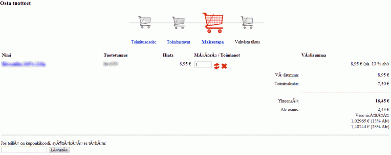 Tuossa myös yksi löytämäni ominaisuus Maksuturvan maksutavassa josta olen lähettänyt tiedon Maksuturvalle 2009