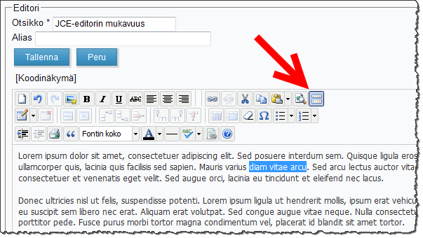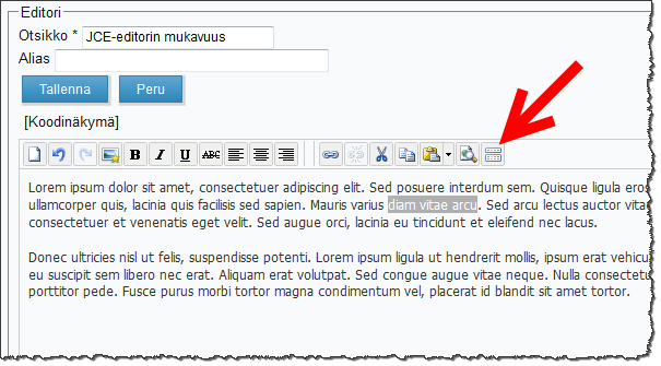 JCE-editorin voit ladata osoitteesta www.joomlacontenteditor.net ja kielipaketin löydät Joomla.fi-sivuston tiedostoalueeelta.