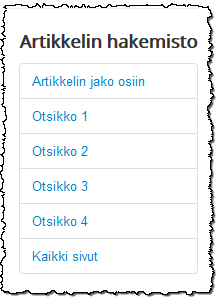 | Kuva 1: liitännäisen asetukset | Kuva 2: luettelo artikkelissa |