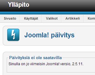 Ajattelin, että voisin kokeilla siellä hallintapanelissa olevaa päivitystä, mutta ilmoittaa, että Joomla on ajantasalla 2.5.11.